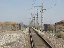The Jiajing Railway (Chinese: 嘉镜铁路, shortened form of Jiayuguan–Jingtieshan Railway; Chinese: 嘉峪关镜铁山铁路), officially the Jingtieshan Branch Line (Chinese: 镜铁山支线), is a 69 km (43 mi)-long branch line of the Lanxin Railway in Gansu Province, China.[1] The railway line mostly runs through rural Sunan County and connects Jiayuguan City with the Jingtieshan iron mine in the Qilian Mountains south of Jiayuguan. The route follows the course of the Beida River (Chinese: 北大河) through the Qilian Mountains before reaching the Gobi Desert outside of Jiayuguan.[2]