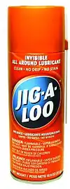 Jig-A-Loo is a silicone-based lubricant and water-repellent spray. The manufacturer states that it contains no oil, grease, wax, petroleum distillates or detergent and that it doesn't stain or smell after application. It is indicated for use on wood, metal, glass, rubber, leather, fabrics and most plastics.[1] It has been used in the commercial and industrial sectors in Canada since 1958, and was launched in 1998 to the Canadian mass retail market, and globally in 2007.