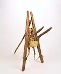 A jige (Korean: 지게) is a traditional Korean farming tool used by farmers to carry large quantities of heavy materials. The tool is used in agricultural communities to facilitate the transportation of large quantities of materials such as compost, grain, wood, and grass. Its design varies depending on the region.[1] A jige is easy to make and has been used extensively due to the mountainous terrain of Korea.[2]