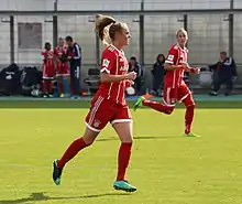 Ahead of the 2017–18 season, Roord signed a two-year contract with Bayern Munich to play in Germany's top league, Frauen-Bundesliga.[6][7] On 2 September 2017, she made her debut for the club in a 3–0 win over SGS Essen.[8] On 15 October 2017, she scored her first goal in a 2–0 home victory against SC Sand.[8] During her first season with the club, Roord scored six goals in the 17 games in which she played.[8] Bayern Munich finished in second place during the regular season with a 17–3–2 record.[9] Her six goals tied with two other players as the third top goal scorers on the team.[8]