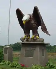 Because of this connection, the reservoir behind the dam is named "Old Abe Lake." Moreover, in a park on the Old Abe State Trail, which runs through the town, a 10½ foot statue of Old Abe has been erected near the dam.[8]