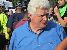 In November 2009 Ellmore announced he would again challenge Moran, but dropped out of the race four months later.[19] In the June 2010 Republican primary, attorney Matthew Berry narrowly lost to retired U.S. Army Colonel Jay Patrick Murray, after a last-minute mailing attacking Berry's homosexuality.[20][21] Fisher again was on the ballot.[22] During the campaign, Moran was criticized by military advocacy groups and conservatives for saying, at a local Democratic committee meeting, that Murray had not "served or performed any kind of public service".[23][24][25] Moran responded by commending Murray's military service, while saying that he used the phrase in relation to Murray not having engaged in "local civic engagement" and not having served in local office.[26] In November 2010, Moran was re-elected to an eleventh term with 61% of the vote.[27]