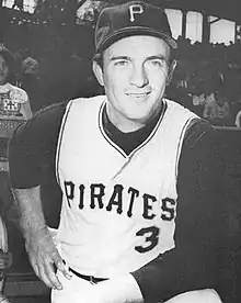 On November 20, 1962, Pagliaroni was traded by the Boston Red Sox along with Don Schwall to the Pittsburgh Pirates for Jack Lamabe and Dick Stuart.[3] When the Pirates' regular catcher, Smoky Burgess, was sidelined by an injury, Pagliaroni alternated with catcher Ron Brand to fulfill the catching duties.[16] Pagliaroni himself was injured in June when, a fractured ring finger on his right hand made him miss three weeks of the season.[16] He ended the 1963 season with a .230 batting average with 11 home runs in 92 games.[1]