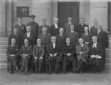 Portrait of Judge Sealy with lawyers and a Garda outside Waterford Courthouse, c. 1944.