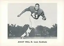 Jimmy "Iron Claw" Hill (born July 22, 1928) is a former American football player for the Chicago/St. Louis Cardinals and Detroit Lions of the National Football League (NFL). He ended his professional career with the American Football League's Kansas City Chiefs in their AFL championship year of 1966.