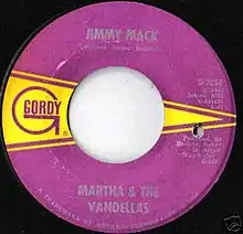 "Jimmy Mack" is a pop/soul song that in 1967 became a hit single by Martha and the Vandellas for Motown's Gordy imprint. Written and produced by Motown's main creative team, Holland–Dozier–Holland, "Jimmy Mack" was the final Top 10 pop hit for the Vandellas in the United States, peaking at number 10 on the Billboard Hot 100 in 1967 and at number-one on the Billboard R&B Singles chart.[1] Billboard named the song #82 on their list of 100 Greatest Girl Group Songs of All Time.[2]