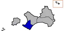 Jincheng Township (blue) in Kinmen County (grey)