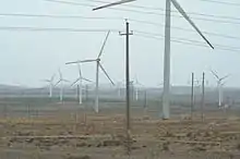 Geographical location and special irrigation system provide Jingtai County with unique conditions for agricultural development. The Yellow River flows through Jingtai County for 112 kilometres (70 mi).[2] The county is home to the Jingtaichuan Electric Power Lifting Irrigation Project (Chinese: 景泰川电力提灌工程),[2] which is the largest in all of China,[2] and in Asia.[6] There are two large-scale, nationwide noted, irrigation projects with a total capacity of 245,600 kW and a water lifting capacity of 28.6 m³ per second.