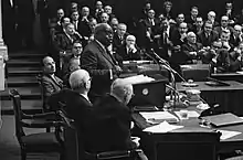 On 18 November 1965, Einaar was appointed Minister Plenipotentiary of Suriname,[7] and had been acting minister since 1 January.[9] The Minister Plenipotentiary represented Suriname in the Council of Ministers,[10] and is allowed to address the House of Representatives.[1] Princess Beatrix announced her engagement to Prince Claus. On 10 November,[11] the States General of the Netherlands had to approve the marriage and the naturalisation of Prince Claus.[12] The televised and heated debate focused on Claus' past in Nazi Germany even though he had seen no combat.[1][13] During the debate, Einaar took the microphone, and delivered a passionate plea to allow the marriage of two people who love each other.[14][7] The marriage was approved with 132 votes in favour and 9 against.[12] Einaar later received his first fan mail.[1] He served until 1 July 1968,[7] and became President Curator of the University of Suriname.[15]