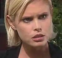 In February 1997, producers told Harrison they were writing her out of Neighbours.[6] Chris Hughes of the Daily Mirror reported Harrison was written out due to rows with the producers, who claimed her acting was not good enough.[6] A show inside told Hughes, "She was called in to see the bosses and told that her acting was bad. They've always been harsh on models, but she had little ability and the role went to her head. When she started it was suggested she take acting lessons but after a while she stopped. She had decided she didn't need them any more. A lot of us felt she had become a prima donna."[6] In 2005, Harrison was invited back to Neighbours for the 20th anniversary episode, but she did not appear.[7]