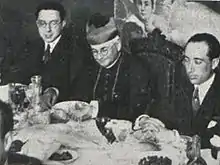 By many Carlists Bau was viewed with suspicion. This was due to his enthusiasm when engaging in alliance talks with the Alfonsinos[67] and personal friendship with their leader, José Calvo Sotelo;[68] though new Traditionalist jefe Manuel Fal approached Bloque Nacional as tactical option to be eventually abandoned, Bau was suspected of pushing for a dynastical compromise. In the spring of 1935 Don Alfonso Carlos and Fal considered Bau's activity in the Bloque intolerable and semi-rebellious.[69] Also present-day scholars name his position as "conspiration",[70] while others claim that he was loyal to Calvo rather than to Traditionalism.[71] However, he was allowed to speak at massive Carlist meetings in Poblet[72] and at Montserrat;[73] he was also appointed to the Carlist Council of Economy.[74]
