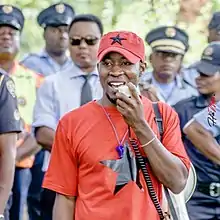 ![]() Amupanda in 2019 at a youth protest on land in Windhoek | |