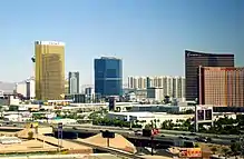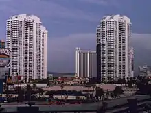 Panorama Towers was announced in September 2003,[115] and began construction the following year.[116] The first tower was opened in 2006,[117] followed by a second tower in 2007.[118] Both towers stand 33 stories high,[119][120] and were built at an estimated cost of $300 million.[117] A third tower, standing 45 stories, was renamed as The Martin in 2011,[121] and received a $3 million renovation to increase sales.[122] The complex is located west of Interstate 15 and CityCenter.