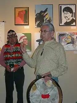 Joe David (born June 30, 1946) is a Nuu-chah-nulth artist, a member of the Tla-o-qui-aht Band of the Nuu-chah-nulth people,[1][2][3][4] also formally "adopted" into the Haida people,[5][6] whose work is identified with the contemporary Northwest Coast art movement;[3] among his close associates are teacher and art historian Bill Holm, Duane Pasco, and his cousin Ron Hamilton.[1][4] He is also a singer of traditional Nuu-chah-nulth songs, and has a strong interest in shamanic traditions,[7] both those from his own culture and from others.[3]