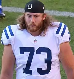 Haeg was drafted in the fifth round with the 155th overall pick in the 2016 NFL Draft by the Indianapolis Colts.[2] He signed his rookie contract with the Colts on May 5, 2016.[3] He played in 15 games with 14 starts as a rookie for the Colts.[4] In 2017, he played in all 16 games, starting 15 at right tackle and right guard.[5]