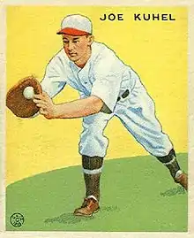 Joseph Anthony Kuhel (June 25, 1906 – February 26, 1984) was an American professional baseball player and manager. Born in Cleveland, Ohio, he was a first baseman who played in the Major Leagues from 1930–47 for the Washington Senators (1930–37; 1944–46) and Chicago White Sox (1938–43; 1946–47). He batted and threw left-handed, stood 6 feet (1.8 m) tall and weighed 180 pounds (82 kg). Following his playing career, Kuhel managed the Senators (1948–49). In an 18-season career, Kuhel was a .277 hitter with 131 home runs and 1,049 RBI in 2,104 games played. Defensively, he posted a career .992 fielding percentage.