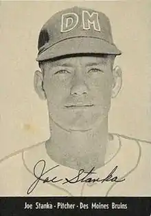 Joe Donald Stanka (July 23, 1931 – October 15, 2018) was an American professional baseball player. The right-handed pitcher from Hammon, Oklahoma played for the Chicago White Sox of Major League Baseball (1959), and the Nankai Hawks and Taiyo Whales in the Japanese professional leagues (1960–66). He stood 6 feet 6 inches (1.98 m) tall and weighed 201 pounds (91 kg).