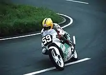 William Joseph Dunlop OBE (25 February 1952 – 2 July 2000) was a Northern Irish motorcyclist from Ballymoney. He won his third hat trick at the Isle of Man TT in 2000 and set his fastest lap on the course of 123.87 mph in the Senior race, which he finished third. In 2016 he was voted through Motorcycle News as the fifth greatest motorcycling icon ever, behind Valentino Rossi.[1] His achievements include three hat-tricks at the Isle of Man TT meeting (1985, 1988 and 2000), where he won a record 26 races in total. A curve at the 26th milestone on the Isle of Man was named in his honour.