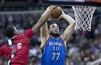 On 30 August 2016 Lauvergne was traded to the Oklahoma City Thunder in exchange for two protected 2017 second round draft picks.[24] On 3 February 2017 he scored a season-high 16 points in a 114–102 win over the Memphis Grizzlies.[25]