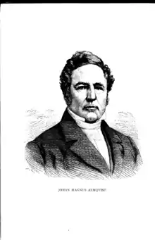 Johan Magnus Almqvist (September 6, 1799 – October 9, 1873) was a Swedish theologian and parliamentarian.[1] He was born in Stockholm, Sweden.[2][3] He became a member of the Order of the Polar Star a Swedish order of chivalry in 1862.