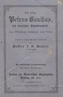 - Der selige Petrus Canisius, ein Apostel Deutschlands; zum 300jährigen Gedächtnisse seines Todes, 1897.[b 8]