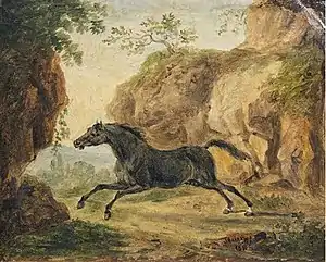 There, he supported his family by giving private drawing lessons and making copies of oil paintings by popular artists of Dutch origin; primarily Philips Wouwerman and Johann Heinrich Roos, both known for their scenes featuring animals. In 1786, he was offered a position as a drawing teacher at the Stuttgart gymnasium, which he accepted and held until his retirement in 1817. Duke, later King Frederick I of Württemberg, named him a court painter, in charge of animal painting, in 1801.[2]
