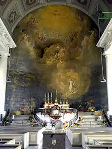 His best-known work was a monumental altarpiece, depicting the Annunciation, at the Stadtkirche in Ludwigslust, which had been left unfinished by his teacher, Findorff, and allowed to remain that way until 1788.[2] He was occupied with that project until 1803, due to his many other duties as court painter, which included the design of decorations for the court festivals, the painting of fabrics and wallpaper and the design of silk flags for the military. In addition, he was responsible for maintaining the ducal art holdings, and therefore often had to restore old pictures.