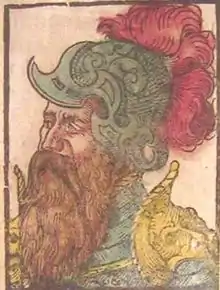In 1529 he married the first of his four wives, a daughter of Heinrich Brennwald, who wrote a work (still in manuscript) on Swiss history, and stimulated his son-in-law to undertake historical studies. Stumpf made wide researches, with this object, for many years, and undertook also several journeys, of which that in 1544 to Engelberg and through the Valais seems to be the most important, perhaps because his original diary has been preserved to us. The fruit of his labours (completed at the end of 1546) was published in 1548 at Zürich in a huge folio of 934 pages (with many fine wood engravings, coats of arms, maps, &c.), under the title of Gemeiner loblicher Eydgnoschafft Stetten, Landen und Voelckeren Chronick wirdiger thaaten Beschreybung. An extract from it was published in 1554, under the name of Schwytzer Chronika. New and greatly enlarged editions of the original work were issued in 1586 and 1606.[1] The woodcuts are best in the first edition, and it remained till Scheuchzer's day (early 18th century) the chief authority on its subject.