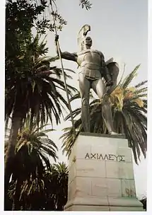 His work gained the attention of Kaiser Wilhelm II, who chose him to produce a group of figures for the Kaiser's monumental Siegesallee (Victory Avenue) project. Later, in 1909, at the Kaiser's request, he produced a gigantic statue of Achilles in a victorious stance for the Achilleion, a palace on Corfu built by Elisabeth of Bavaria.[2] The statue was meant to offset an earlier work by Ernst Herter called the "Dying Achilles".[3]