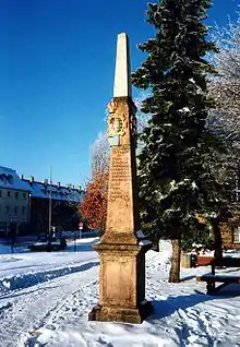 In the New Town (Neustadt) stands a Saxony postal milestone from 1728, which once stood at the market.