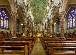 Construction on the modern church was commenced at Easter 1862 under the leadership of Fr. Martin Crane, and it took 33 years to complete. One problem was that the foreman and many of the workmen were Fenians, who got in trouble with the authorities in 1865 and afterwards. For this reason the church was nicknamed "The Fenian Church".[5]