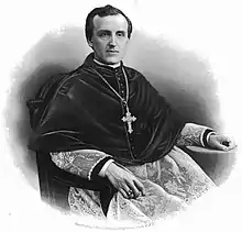 On March 14, 1880, Watterson was appointed the second Bishop of Columbus by Pope Leo XIII.[5] He received his episcopal consecration on the following August 8 from Archbishop William Henry Elder, with Bishops William George McCloskey and John Tuigg serving as co-consecrators.[5] During his 19-year-long tenure, Watterson increased the number of priests and schools in the diocese, founded two hospitals and the Pontifical College Josephinum, and erected many new missions and parishes.[3] A strong proponent of temperance, he prohibited saloon owners from holding office in any Catholic organization in the diocese, and made all the children to whom he administered Confirmation promise not to drink until they were 21.[3] He was the first Catholic bishop ever to speak at Ohio State University.[6]