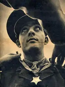 ![]() John Basilone receiving the Medal of Honor in 1943 | |