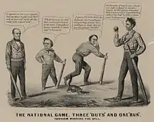 Initially an ally of Andrew Jackson, Bell turned against Jackson in the mid-1830s and aligned himself with the National Republican Party and then the Whig Party, a shift that earned him the nickname "The Great Apostate."[2][3] He consistently battled Jackson's allies, namely James K. Polk, over issues such as the national bank and the election spoils system. Following the death of Hugh Lawson White in 1840, Bell became the acknowledged leader of Tennessee's Whigs.[1]