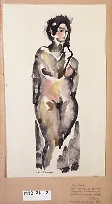 In his youth, Flannagan was recognized as possessing artistic talents, and in 1914 he attended the Minneapolis School of Art, now the Minneapolis College of Art and Design, where he studied painting. When the United States entered World War I in 1917, Flannagan quit school and joined the Merchant Marines. He remained a merchant marine until 1922.[2] After his return to civilian life, he was hired by painter Arthur B. Davies to work on Davies' farm in New York State. There Davis encouraged the young man to return to painting, which he did, also taking up wood carving. A year later, in 1922, Flannagan appeared in his first exhibition, along with Davies, Walt Kuhn, Charles Sheeler, William Glackens, and Charles and Maurice Prendergast.[3] In 1927 Flannagan gave up painting and wood carving to concentrate on stone carving. In 1928 he produced some of the first American direct carved stone sculptures of note, one of which is entitled "Pelican."