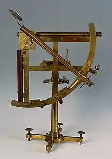 John Bird (1709–1776) was a British mathematical instrument maker. He was born at Bishop Auckland. He came to London in 1740 where he worked for Jonathan Sisson and George Graham.[1] By 1745 he had his own business in the Strand. Bird was commissioned to make a brass quadrant 8 feet across for the Royal Observatory at Greenwich, where it was mounted on 16 February 1750, and where it is still preserved. Soon after, duplicates were ordered for France, Spain and Russia.