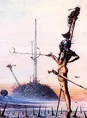 After the company's move to Nottingham in 1986, Blanche was eventually made art director of Games Workshop through his acquaintance with new manager Bryan Ansell, directing the in-house art department, commissioning work from outside illustrators, and producing designs for Citadel Miniatures and artwork, and where he currently remains.[2][9] He has overseen and contributed to regular art and miniature painting columns in White Dwarf for many years, as well as providing numerous illustrations for Games Workshop games, and, with other artists like Ian Miller and Adrian Smith, providing a formative contribution to the look of the companies core products.[1]