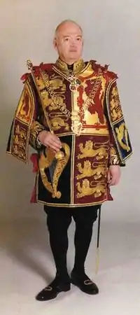 Brooke-Little garnered many honours and awards during his time of service to the Crown. He was appointed a 4th Class Member of the Royal Victorian Order (an honour now known as Lieutenant of the Royal Victorian Order) in 1969 for his services at the Investiture of the Prince of Wales.[24] This was followed by a promotion to Commander of the Royal Victorian Order at the 1984 New Year Honours[25] Though most Kings of Arms up to that time were knighted, that honour was never given to him. The closest that he came was in 1975 when he was made a Knight of Justice of the Most Venerable Order of the Hospital of Saint John of Jerusalem,[26][27] the British revival of the ancient Knights Hospitaller of Saint John.