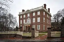 The John Brown House is the first mansion built in Providence, Rhode Island, located at 52 Power Street on College Hill where it borders the campus of Brown University. The house is named after the original owner, one of the early benefactors of the university, merchant, statesman, and slave trader John Brown. It was declared a National Historic Landmark in 1968.[2][3] John Quincy Adams considered it "the most magnificent and elegant private mansion that I have ever seen on this continent."[3]
