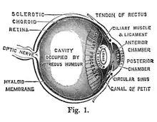 By the early 1870s, practical optics had become John Browning's primary interest, and he listed his occupation as optician on the census records from 1871 to 1901.[2][3][4][5][7] He was well known among London's ophthalmic surgeons for his various ophthalmic instruments.[11] Browning had a large part in reforming the art of crafting spectacles.[7] Employees of his company tested people's eyesight and made eyeglasses for them.[23] John Browning was the author of the book, How to Use Our Eyes and How to Preserve them by the Aid of Spectacles.[24] Published in 1883, the book included thirty-seven illustrations, including a diagram demonstrating the anatomy of the eye (pictured).[24] In 1895, he was one of the founders of the British Optical Association, the first professional and examining organisation for optometry. He was not only its first president, but also registered as its first member, so that many consider him to be the first professional optometrist.[13]