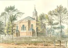 Widower John Browning remarried on 24 July 1890 at the Holy Trinity Church, Clapham, on Clapham Common London, at the time recorded as Surrey.[29] He married Annie Woolley, a spinster whose place of birth and residence at the time of their marriage was Chapel Hill in Monmouthshire, Wales. She was the daughter of Josiah Woolley, a licensed victualler, and his wife Harriet Woolley.[29][30] Her age was listed as 25 years old, thirty years younger than that recorded for her husband. Their marriage record and John Browning's death record are most probably responsible for the difference in dates of birth cited for John Browning in a variety of publications. The marriage record suggests that he was born around 1835, with a given age of 55 at marriage, while his death record suggests that his birth occurred about 1831.[1][29] Browning's father was listed as William Browning (deceased), with his profession that of optician. John Browning's occupation was also listed as optician.[29] In 1891, the year following their marriage, John and Annie Browning resided in Clapham, with his profession again recorded as optician.[4] The Church of Holy Trinity, Clapham was added to the National Heritage List for England on 14 July 1955 as a Grade II* listed building.[31][32]