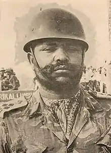 In 1957 Walden saw a recruitment advertisement for the King's African Rifles (KAR), and, forgoing his original wish to join the navy, decided to enlist at Colito Barracks in Dar es Salaam. He enjoyed military life and saw his service as an opportunity for adventure. Due to a shortage of administrative staff in the training section, he worked as a clerk for several months before beginning formal military instruction in July. In February 1958 he completed his training and was assigned to A Company, 6th Battalion KAR at Colito. Around two months later he was promoted to lance corporal. In early 1958 Walden was sent to Nakuru for instruction in storekeeping. After completing it he returned to Colito, though his company had already been posted to Mauritius for routine garrison duties. The following year he joined his unit there, and served as a storekeeper, performed administrative duties, and acted as a translator for the sub-area commander. In 1960 a cyclone struck the island and Walden was given charge of co-ordinating the distribution of disaster relief supplies with the Red Cross. Afterwards, A Company returned to Dar es Salaam, staying there for one or two months before being moved to Shinyanga.[5] In December 1961 Tanganyika became a sovereign state and the 6th Battalion KAR were transferred to the newly formed Tanganyika Rifles.[6] In 1962 Walden was made a sergeant and became his company's quartermaster. With the assistance of his unit's commander, he was able to take multiple specialised training courses. In late 1962 he was enrolled in Mons Officer Cadet School. He graduated in April 1963 as a lieutenant and was given command of a platoon in B Company, 1st Tanganyika Rifles at Colito.[5] Walden later chose "Black Mamba"—the name of a venomous snake—as his nom de guerre.[7] He was a skilled marksman. In the late 1960s he held various responsibilities, including command of a Tanzania National Service camp in Mafinga, Iringa while holding the rank of major. Shortly after Mozambique obtained independence in 1975, Walden was sent there to serve as a military attaché.[2]