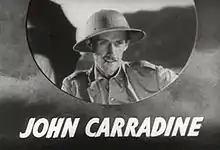 He appeared in dozens of low-budget horror films from the 1940s onwards, to finance a touring classical theatre company. He also played a small but important role in the very-high-budget comedy The Court Jester, which was at the time of its release the most expensive comedy film ever made.[8][9] He sang the theme song to one film in which he appeared briefly, Red Zone Cuba. Carradine also made more than 100 acting appearances on television over a period of 39 years. His first performance on the "small screen" was on the DuMont Television Network in 1947, when he played Ebenezer Scrooge in a broadcast presentation of A Christmas Carol. His final role on television was in 1986 as Professor Alex Stottel on a revival of the classic series The Twilight Zone, in an episode segment titled "Still Life."[10] Some examples of other television series on which he appeared include My Friend Flicka, Johnny Ringo (as The Rain Man), and Place the Face, NBC's Cimarron City as the foreboding Jared Tucker in the episode "Child of Fear" and on William Bendix's Overland Trail in the 1960 episode "The Reckoning," on Harrigan and Son starring Pat O'Brien in the episode "A Matter of Dignity," Maverick in "Red Dog" starring Roger Moore and Lee Van Cleef, Sugarfoot, The Rebel, and The Legend of Jesse James, on the syndicated adventure series Rescue 8 with actor Jim Davis and in two episodes of the western TV series Bonanza ("Springtime" and "Dead Wrong"). John Carradine also appeared in 1959 as the mind reader in The Rifleman episode of the same name.