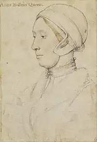 Through the mediation of Matthew Parker, Cheke obtained the support of Anne Boleyn for his student William Bill to continue his studies.[15] After a year as Master of St John's, and as University Vice-Chancellor, George Day was appointed by King Henry to be provost of King's College in 1538, Smith having become University Orator in 1537 in succession to him.[16] In 1540, at the King's creation of the Regius Professorships, Smith was made Professor of Law, Cheke Professor of Greek, and John Blythe (of King's College)[17] Professor of Physick.[18] Blythe married Alice, one of Cheke's sisters, before 1536, and in 1541 William Cecil (afterwards Lord Burleigh), Cheke's distinguished student, married Mary Cheke, another.[19] (Mary Cecil died two years later, leaving Cecil with a son, Thomas Cecil.) In 1542 one "Mistress Cheke" was still resident in the Cheke home at Market Hill, Cambridge.[20]