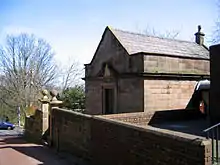 As time passed, the endowment proved insufficient for the maintenance of the building and its contents. By the middle of the 19th century it had "no function and no money". By the middle of the 20th century it was in a state of advanced dilapidation. The adjacent land owned by the church was acquired by the North-West Water Authority. A new parish hall was built with money received as compensation from the Water Authority and a passageway was made to link the hall with the library which now serves as a meeting room.[1] The library is recorded in the National Heritage List for England as a designated Grade II* listed building,[3] and its gates are listed at Grade II.[4]