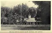 Chisum died in Eureka Springs, Arkansas, on December 23, 1884, aged 60, due to complications from surgery to remove a growth from his jaw. He was unmarried and left his estate worth $500,000 to his brothers Pitzer and James. Chisum had an extended family living with him at the South Springs ranch in Roswell, and this family, along with hired help, often numbered two dozen at the main ranch headquarters. Chisum's niece Sallie Lucy Chisum, daughter of his brother James, became a beloved figure in the area, where she lived until 1934. Sallie kept a diary or journal that has historical importance because of its references to Billy the Kid and Pat Garrett, both of whom she knew. She and John Chisum are honored by statues to their memory in Artesia and Roswell, New Mexico.[5][6] In 1958, he was inducted into the Hall of Great Westerners of the National Cowboy & Western Heritage Museum.[7] John Chisum fathered 2 daughters with his slave mistress Jensie. When Chisum moved west, he took Jensie and their two daughters to Bonham, Texas; bought them a house and left money to care for the girls. His eldest daughter Almeada “Meady” Chisum went on to marry Bob Jones, prominent rancher of Southlake, Texas.