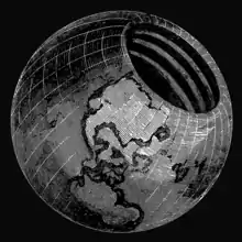Symmes's death left his eldest son, seventeen-year-old Americus Symmes, the sole support of the family, with an estate significantly in debt. Americus provided for his mother and siblings and paid off his father's debts.[31] He also championed his father's legacy, erecting a memorial to him (a pylon topped with a globe carved in the shape of a hollow sphere)[8] and publishing in 1878 an edited collection of his father's papers, Symmes's Theory of Concentric Spheres: Demonstrating That the Earth is Hollow, Habitable Within, and Widely Open About the Poles, Compiled by Americus Symmes, from the Writings of his Father, Capt. John Cleves Symmes[11] (not to be confused with the book of a very similar title published by James McBride in 1826).