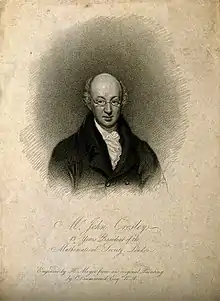 As well as acting as assistant to the Astronomer Royal at Greenwich, Nevil Maskelyne, Crosley was appointed by him as a computer of the Nautical Almanac, an important source of income from 1799 and for the rest of his life.[8] He was a member of the Spitalfields Mathematical Society for 31 years and became its president from about 1800 until his death in 1817. He was recorded on a Society membership list as living at 54 North Street, City Road and, in a subsequent entry, as at 84 Leonard Street.[9] An engraving of him that was included in a 1813 Mathematical Society Scrapbook records that he was then "13 Years President of the Mathematical Society".[10][11]