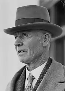 In 1929, Cusack was elected to the House of Representatives for Eden-Monaro,[4] surviving a petition by his defeated opponent John Perkins.[5] He attempted to switch to Cowper at the 1931 election but was defeated by Earle Page.[1] He stood unsuccessfully for several state elections up to 1953,[6] when he failed, at age 80, as an Independent,[7] to unseat the sitting Labor member for Burrinjuck, Billy Sheahan.[8][9] After the election, Cusack accused Sheahan, then NSW Attorney General, of "assist[ing] a masonic vendetta" against him.[10] In 1954, as a vigorous, though erratic, 85-year old, he contested the federal lower-house seat of Australian Capital Territory. He received around 3% of first preference votes[11] and lost his deposit.