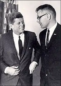 Dingell was generally classified as a moderately liberal member of the Democratic Party[30] and throughout his career he was a leading congressional supporter of organized labor, social welfare measures and traditional progressive policies. At the beginning of every Congress, Dingell introduced a bill providing for a national health insurance system, the same bill that his father proposed while he was in Congress. Dingell also strongly supported Bill Clinton's managed-care proposal early in his administration.[30] In October 1998, President Clinton began a Roosevelt Room appearance "by thanking Senator Jay Rockefeller of West Virginia and Congressman Dingell for their steadfast support of Medicare and their participation in our Medicare Commission."[31]